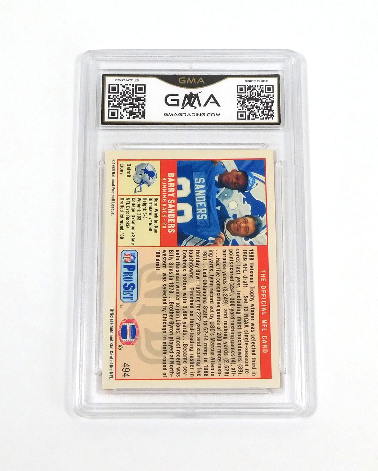 Amazon Com 1989 Pro Set Barry Sanders 494 Rookie Lions Gma 9 Football Graded Card Collectibles Fine Art
